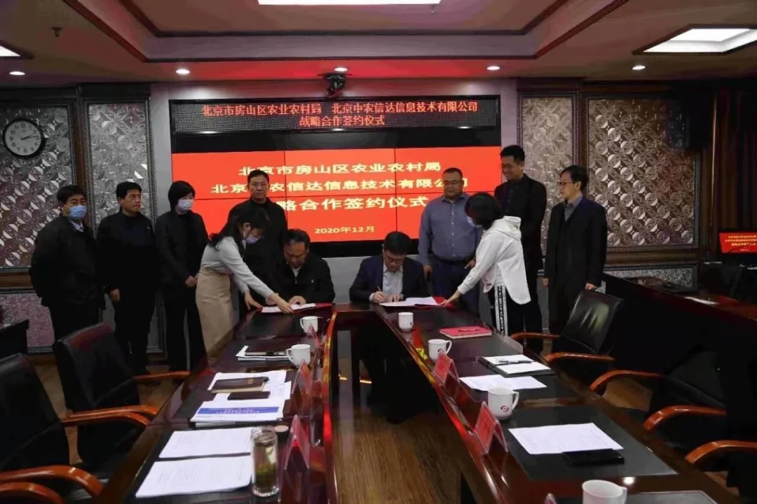 12月22日,北京市房山区农业农村局与神州信息农业板块签订长期战略合作协议,双方将共同推进房山区农业农村数字化,共建“国家数字乡村试点”,共推“数字房山”战略。房山区委农工委书记、区农业农村局局长方玉祥与神州信息农业板块总经理王宇飞作为双方代表签约,房山区农业农村局调研员许志华书记、副局长刘荣秀、副局长毛宝东、副局长邓更喜等出席签约仪式。