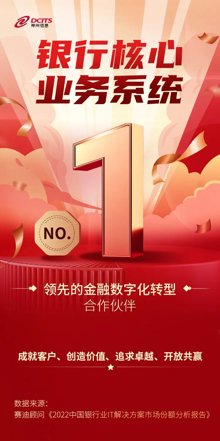 7月12日,工信部下属咨询机构——赛迪顾问正式发布《2022中国银行业IT解决方案市场份额分析报告》,神州信息凭借雄厚的金融数字化实力再次摘得多项市场第一。