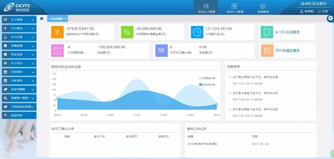 资金头寸管理系统工作台