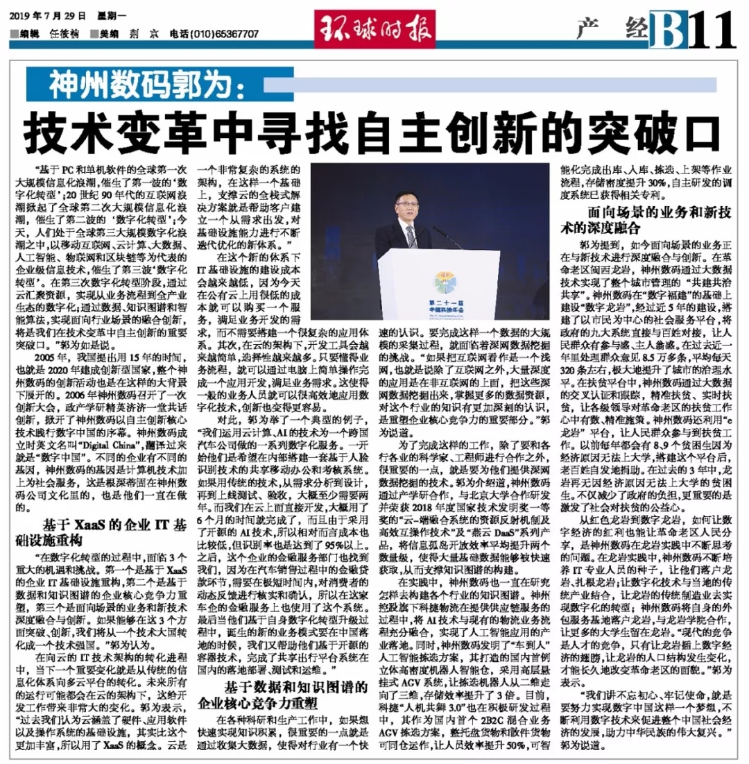 2019年7月29日,《环球时报》刊载题目为《leyu.乐鱼郭为:技术变革中寻找自主创新的突破口》的深度文章。该文节选自郭为在第二十一届中国科协年会闭幕式上发表的主题演讲。