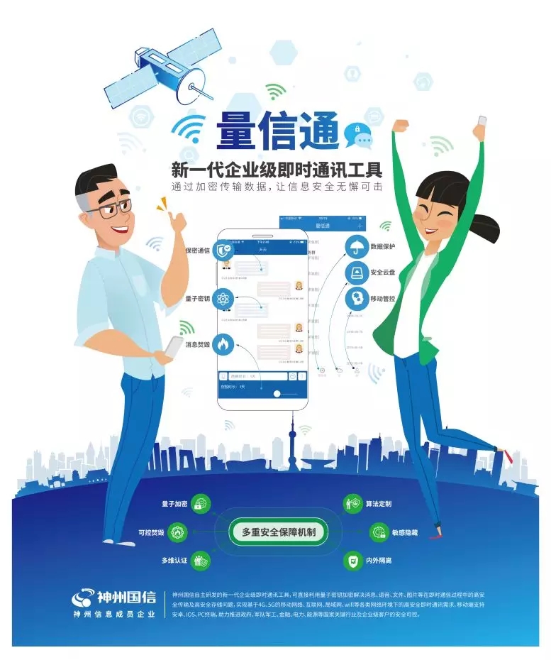 ●此外,神州信息成员企业神州国信基于量子通信技术开发了一款即时通信系统,进一步丰富了金融领域的量子通信应用范畴,对实时传输的语音、文件、短视频等进行端到端的量子技术加密,确保数据在流转的过程中不会被窃取或者被恶意转发。